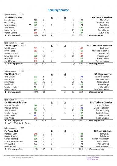 Wir spielte mit: Sven Bürger 481 Holz (0MP), Olaf Schurig 539 Holz (0MP), Toni Schölzel 525 Holz (1MP), Tino Braun 501 Holz (0MP), Robert Kunz 478 Holz (0MP) und Martin Dölling 569 Holz (1MP).